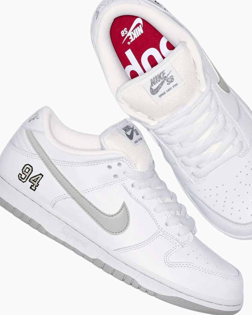 Nike SB Dunk Low Supreme 94 White Metallic Silver